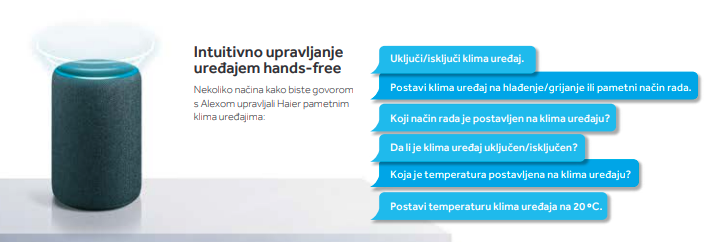Intuitivno upravljanje uređajem hands-free Nekoliko načina kako biste govorom s Alexom upravljali Haier pametnim klima uređajima: