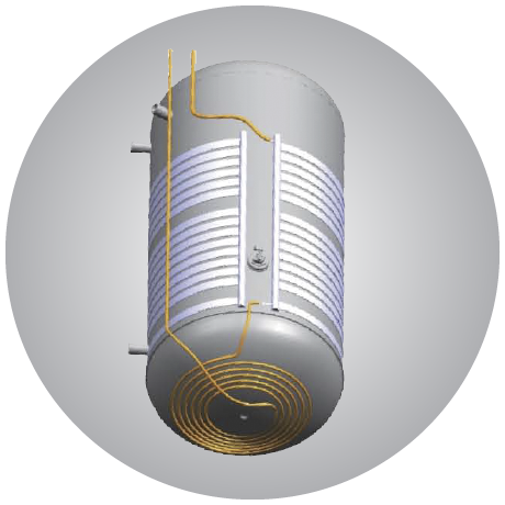 Dizajn s dodatnim donjim zavojnicama (spiralnim cijevima) pridonosi boljoj učinkovitosti te povećava ukupnu površinu izmjene kako bi isporučio još više tople vode.