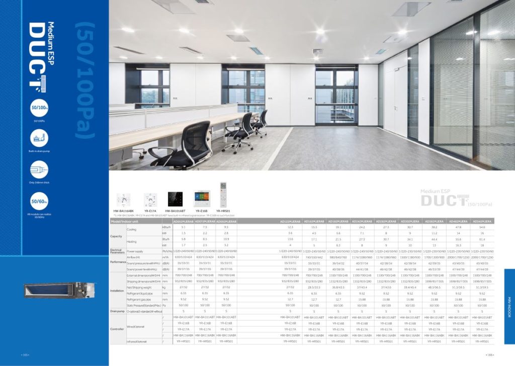 Srednje tlačna kanalna jedinica za kombiniranje s vanjskim jedinicama MRV ili VRF serije proizvoda. Diskretno skrivene u strop, jedinice su dizajnirane kako bi se prilagodile prostorima s ograničenim opcijama za klimatizaciju. Visoki vanjski statički tlak do 100 Pa osigurava fleksibilnu instalaciju zahvaljujući cijevima raznih duljina i snažno stujanje zraka iz jedinice. Model je pogodan za hlađenje i grijanje prostora.