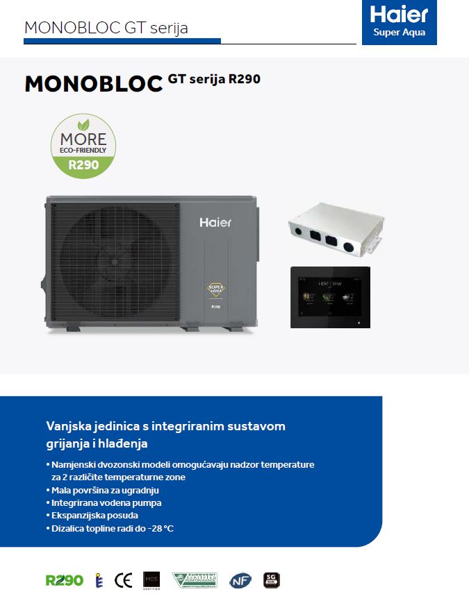 Haier Monobloc R290 dizalica topline predstavlja budućnost grijanja zahvaljujući uporabi ekološki prihvatljivog rashladnog sredstva R290 (propan), koje ima minimalan utjecaj na okoliš. Ova dizalica topline smanjuje emisije CO2 i doprinosi zaštiti ozonskog omotača, čime je idealan izbor za sve one koji žele energetski učinkovito i ekološki održivo rješenje za grijanje i hlađenje doma. Haier Monobloc R290 dizalica topline predstavlja vrhunsko rješenje za sve koji traže visoko učinkovito, ekološki prihvatljivo i praktično rješenje za grijanje i hlađenje. S obzirom na svoju naprednu tehnologiju, energetsku učinkovitost i jednostavnost korištenja, idealan je izbor za moderne domove usmjerene prema održivom životu.